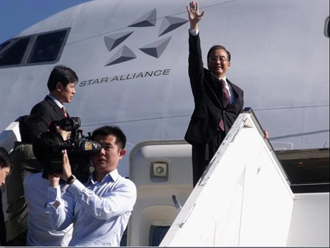 Empfang des Sonderflugpersonal von Premierminister Wen Jabao