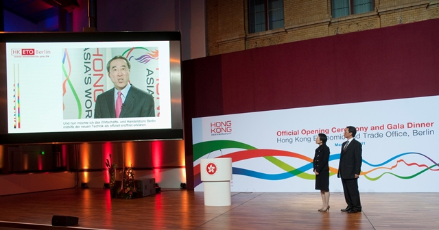 Der Ehrengast der Eröffnungsfeier, Herr Henry Tang, Direktor des Ministeriums für Verwaltungsangelegenheiten Hong Kong und der Sonderverwaltungsregionen der Volksrepublik China (HKSARG), erklärte das Büro per Video offiziel für eröffnet und  enthüllte eine Gedenktafel.